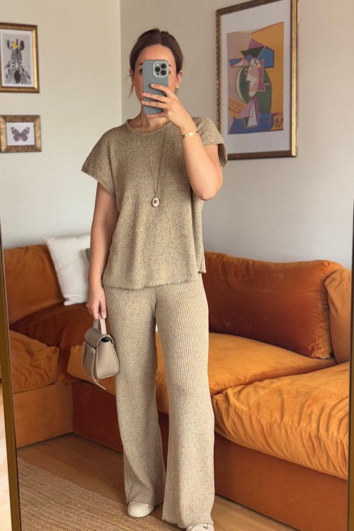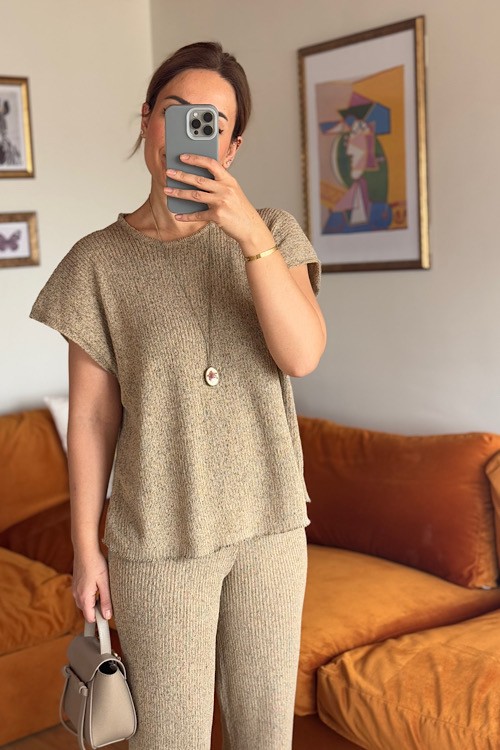 Camel rengi rahat triko takım