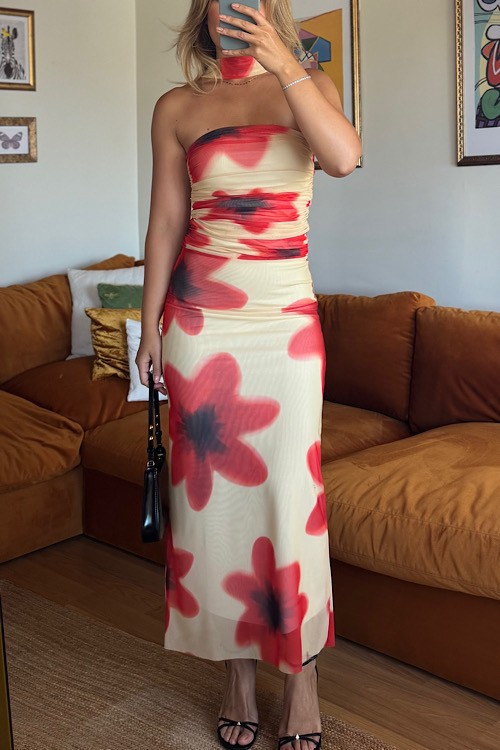 Çiçek desenli alt üst takım üstü drapelidir.
