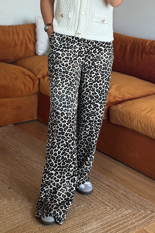 Leopar saten pantolon beli lastikli ve bağcıklıdır.