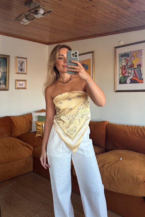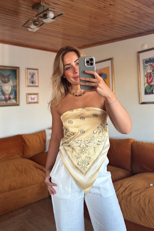 Şal modeli bluz. Bluz straplez yeri kaymamaktadır.