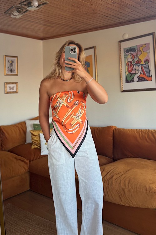Şal modeli bluz. Bluzun straplez yeri kaymamaktadır.