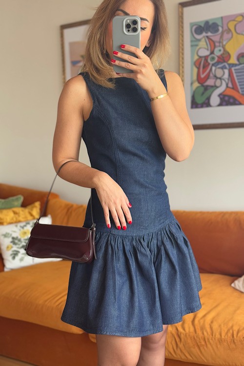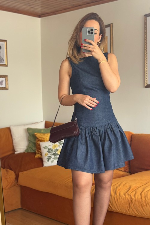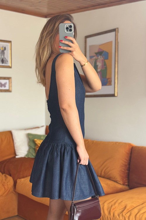 Sırt dekolteli fermuarlı jean elbise
