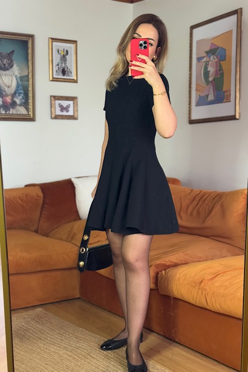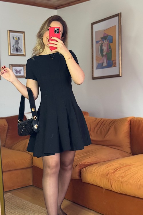 Siyah kaşın pileli kısa kollu kiloş elbise.