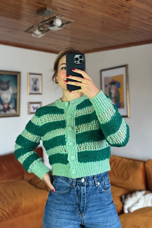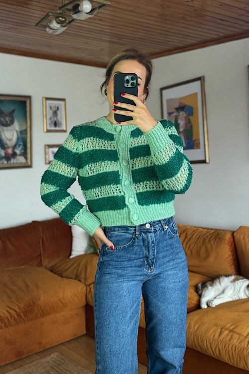 Orjinal marka yeşil çizgili hırka.