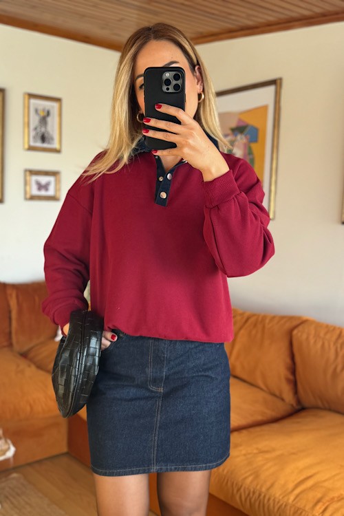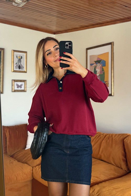 Bordo polo yaka modal kumaş yumuşak dokuda sweat.