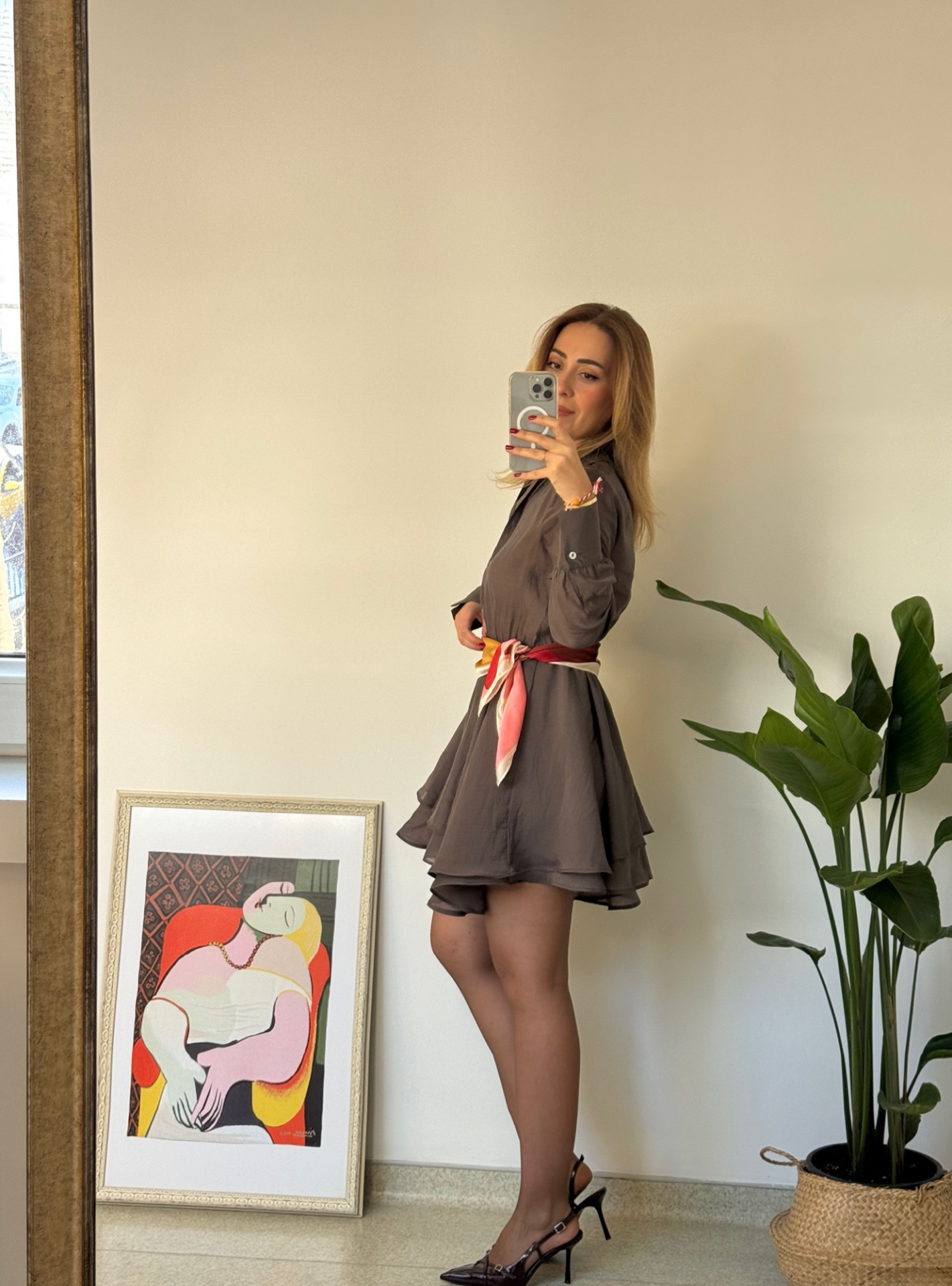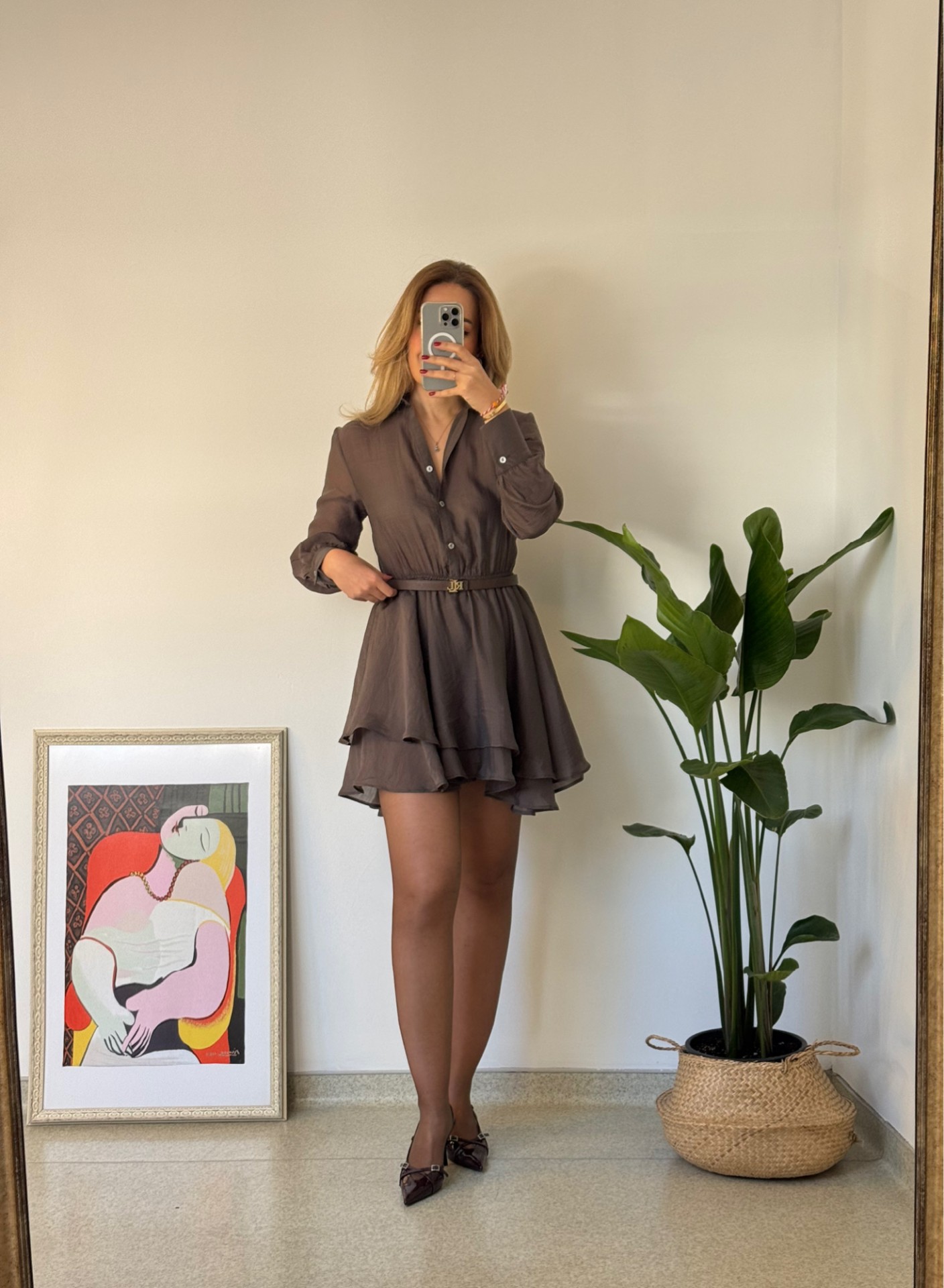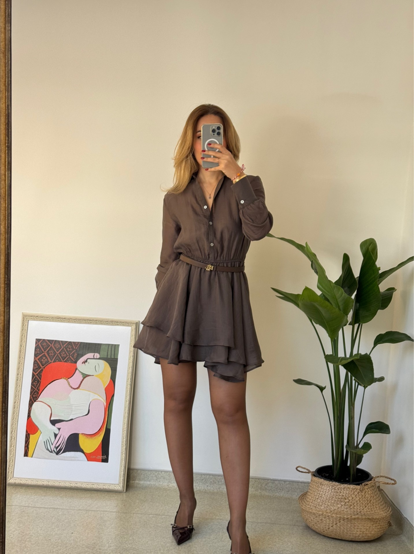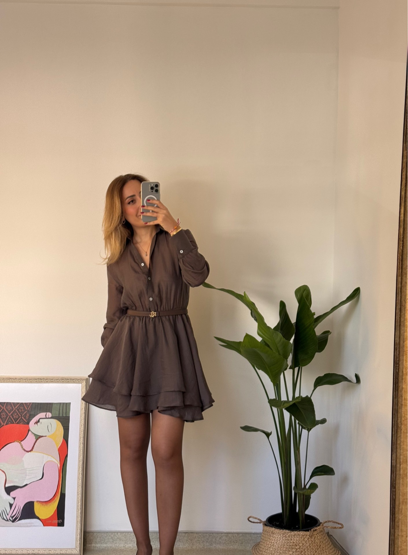 Kahve rengi üst tarafı transparan volanlı kiloş elbise.