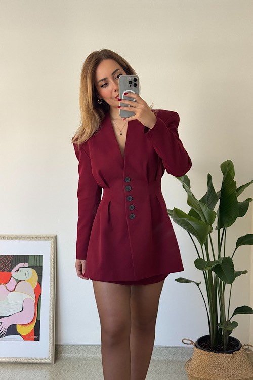 Bordo belden oturtmalı etek ceket takım.