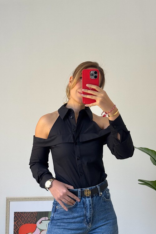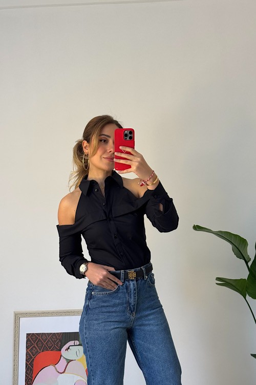SİYAH OMUZLARI AÇIK GÖMLEK - Siyah