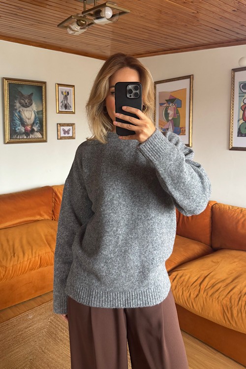 Gri düz satandart kalınlıkta her dolapta mutlaka olması geren kazak.