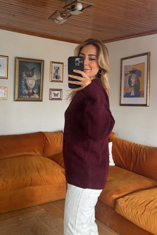 Bordo düz standart kalınlıkta her dolapta olması gereken kazak.