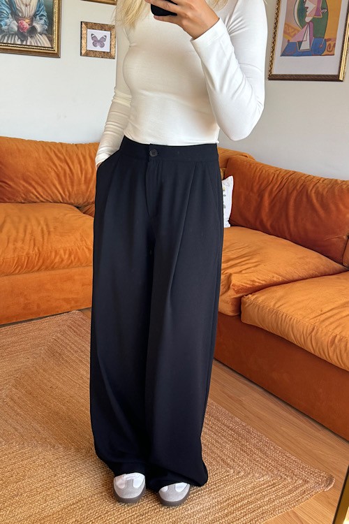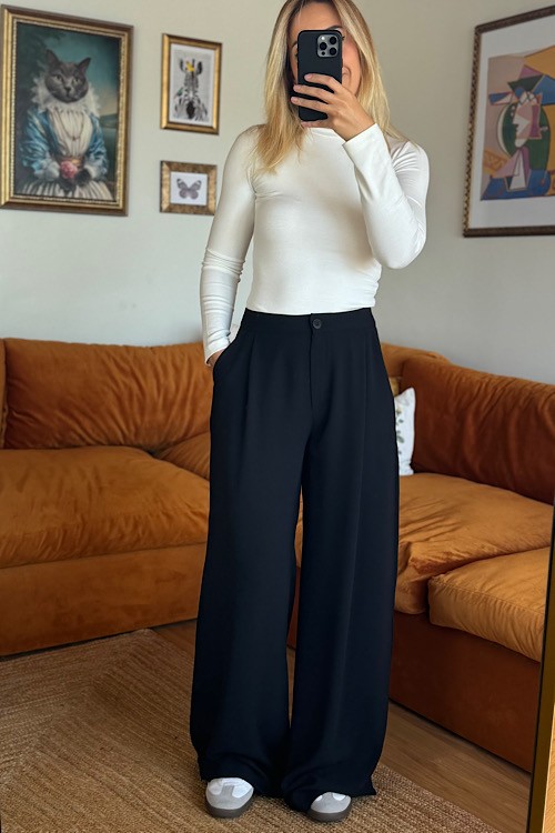 Siyah krep kumaş palazzo pantolon.