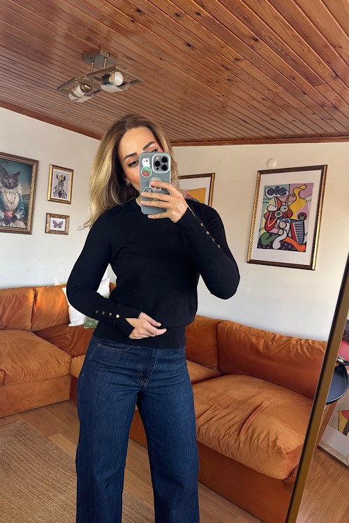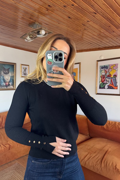 Siyah bisiklet yaka kolları gold detaylı kullanışlı triko