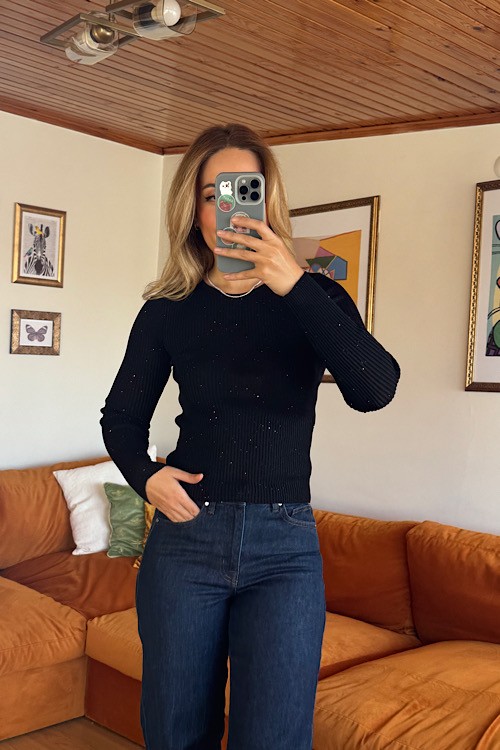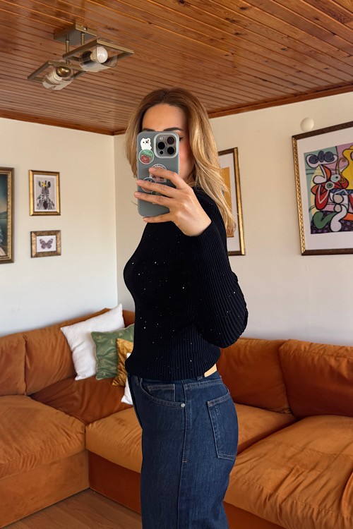 Fitilli taş detaylı fitilli bisiklet yaka triko.