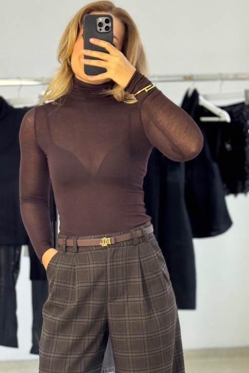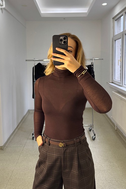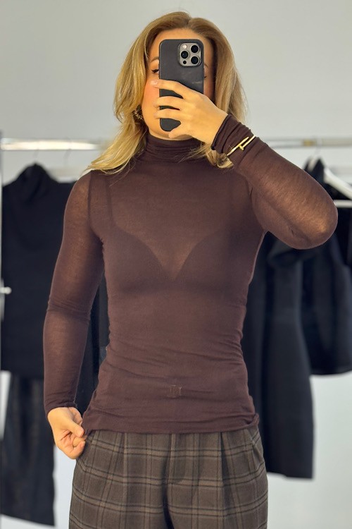 Balıkçı yaka transparan bluz.
