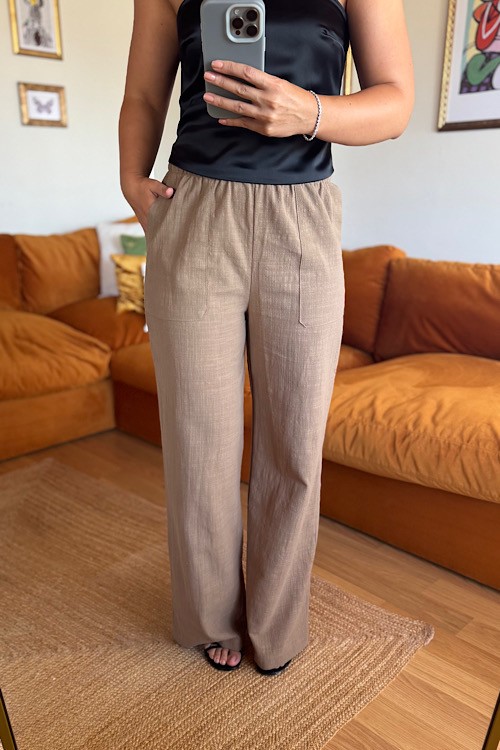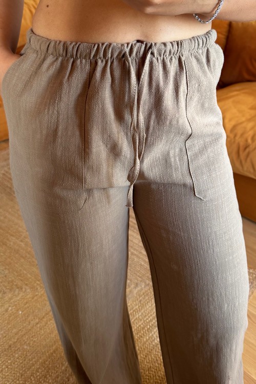 Vizon rengi bağcıklı cepli kullanışlı pantolon.